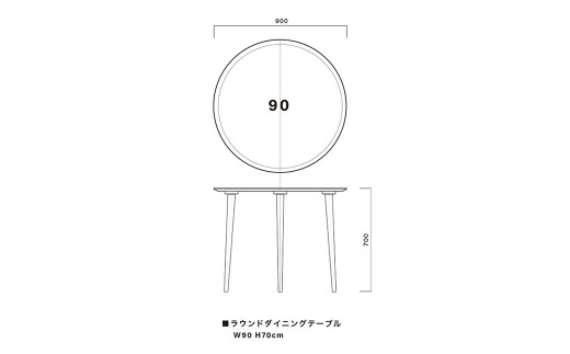 - 直径 :90cm 高さ :70cm 天厚 :2cm 重量 :12.5kg 足径 :根元径5cm・足先径2.4cm