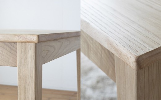 ※ 商品はテーブルのみ 椅子は含みません ※\\n ■商品の魅力\\n無骨なイメージになりがちな鉄脚をスッキリ綺麗なフォルムに仕上げ大人っぽくしました。\\n丁寧に作る事で質感が際立ちモダンで飽きのこないデザインです。\\n\\n■無料オーダー\\n天板横幅 :150cm・140cm・130cm・120cm\\n天板奥行 :85cm・75cm・65cm\\n天板配線孔:有り・無し\\n\\n■仕様\\nサイズ:幅 150cm〜120cm(4サイズ)\\n :奥 85cm〜65cm(3サイズ)\\n :高 71cm\\n天板厚:2.5cm\\n素材 :天板=ホワイトオーク集成材\\n :脚=スチール\\nカラー:天板=クリア色艶消し(ウレタン塗装)\\n :脚= 黒艶消し\\n備品 :高さ調整アジャスター\\n\\n■原材料\\n天板:ホワイトオーク材\\n脚 :スチール焼付塗装(黒)\\n\\n■製造地\\n福岡県柳川市\\n \\n■配送方法\\n大型便(2人)配送です。\\n開梱、組み立て、設置、段ボール撤去込みです。\\n\\n■保存方法\\n木部の反り、割れの原因となるため、屋外、多湿、温度差の激しい場所、直射日光を避けてご使用下さい。\\n\\n\\n■注意事項\\n・サイズ指定(天板横幅・天板奥行・天板配線孔)は必ず備考欄へご記入ください。\\n\\n※備考欄にご記入がない場合※\\n最大サイズ、天板配線孔がないものをお送りいたします。\\n\\n・小節、色むら、色ブレも含み、木目もそれぞれ異なります事をご了承ください。\\n\\n\\n■返礼品提供事業者\\n栄和装工\\n\\n■備考欄\\n市内の事業者において、製造・加工・梱包されており、半分を一定程度上回る付加価値が生じています。(告示第5条第3号に該当)