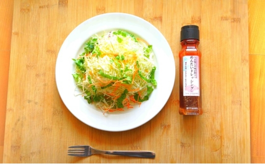 【お土産・贈り物として売れ続ける博多名物「めんたいドレッシング」】 福岡・博多名物の一つといえば「めんたいこ」。福岡で創業以来、美味しいめんたいこの味をより多くの人に味わっていただきたい、福岡を盛り上げていきたいとの思いからつくり、福岡・博多のお土産品、贈り物として高い人気を誇っています。 メインの「めんたいこ」には、福岡県産の厳選めんたいこを「生のまま」贅沢に使用することでドレッシングとは思えないほど、めんたいこの辛味・旨味が凝縮されており、深い味わいを楽しむことができます。 原料の割合、配合時間など試行錯誤を繰り返した独自の漬け込み製造により、生のめんたいこを最大限活かせるように完成した「めんたいドレッシング」。ぜひ、一度ご賞味ください。ラッピング対応もしておりますので、贈り物にもご活用いただけます。 ※画像はイメージです。 ※離島にはお届けできません。
