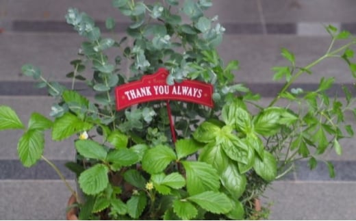 フレッシュなユーカリとハーブで気持ちリラックス。ハーブは摘み取ってお料理やお茶、お菓子に使ったり、ユーカリと一緒に器に飾ったりと使い方いろいろ。 育てて収穫する楽しみも感じられるハーブの寄せ植えです。生産地:福岡県朝倉市 ●ハーブ・・・5種類のハーブをお植えします ●ユーカリ・・・種類お任せ ●鉢サイズ・・・直径約24cm ●鉢・・・テラコッタ鉢 ※画像はイメージです。 ※離島にはお届けできません。 ●ハーブの種類について・・・季節のハーブを厳選してお植えします。(お任せになります) ●苗の大きさについて・・・時期によってハーブの苗の大きさが変わります。 ●置き場所・・・ベランダ、屋外など、風通しのよい場所 ●お水やり・・・土の表面が乾いたらたっぷり鉢底からしみ出るくらいあげてください。 キーワード:ガーデニング