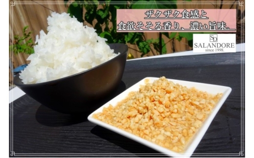 細かく砕いたナッツと、独自のスパイスを特製ガーリックオイルに漬けて、ザクザク食感に凝縮した旨味がやみつきになる、何度でも食べたくなる美味しい逸品に仕上げました。 白ご飯のおとも、パスタやうどん等の麺類に混ぜる、お肉、揚げ物料理に添える、そのまま食べるのもおススメです。 おかずナッツは、今までにない食感と旨味の実現に試行錯誤した逸品です。 数々のナッツを取り寄せ、自家製ガーリックオイルに漬けた際のザクザクとした食感、独自のスパイスとの味の絡み具合などが適した良いナッツを厳選して使用しております。 また、スパイス分量や配合方法など、ナッツに合うよう何度も試作を重ねてたどり着いた味です。 ぷれーんは、にんにく、オリーブオイルの香りが食欲をそそりそのままでも、色んなものにかけても食べたくなる味です。 発売して早速、「ずっと食べてしまう!」と大好評をいただいております。 ぜひ一度ご賞味ください! ※画像はイメージです。 ※離島にはお届けできません。 【保存方法】 ※直射日光、高温多湿を避け冷暗所にて保存、開栓後要冷蔵。 ※開封後は冷蔵庫に入れ、早めにお召し上がりください。