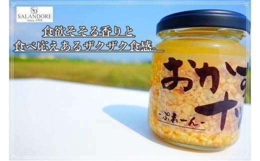 細かく砕いたナッツと、独自のスパイスを特製ガーリックオイルに漬けて、ザクザク食感に凝縮した旨味がやみつきになる、何度でも食べたくなる美味しい逸品に仕上げました。 白ご飯のおとも、パスタやうどん等の麺類に混ぜる、お肉、揚げ物料理に添える、そのまま食べるのもおススメです。 おかずナッツは、今までにない食感と旨味の実現に試行錯誤した逸品です。 数々のナッツを取り寄せ、自家製ガーリックオイルに漬けた際のザクザクとした食感、独自のスパイスとの味の絡み具合などが適した良いナッツを厳選して使用しております。 また、スパイス分量や配合方法など、ナッツに合うよう何度も試作を重ねてたどり着いた味です。 ぷれーんは、にんにく、オリーブオイルの香りが食欲をそそりそのままでも、色んなものにかけても食べたくなる味です。 発売して早速、「ずっと食べてしまう!」と大好評をいただいております。 ぜひ一度ご賞味ください! ※画像はイメージです。 ※離島にはお届けできません。 【保存方法】 ※直射日光、高温多湿を避け冷暗所にて保存、開栓後要冷蔵。 ※開封後は冷蔵庫に入れ、早めにお召し上がりください。