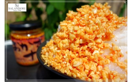 細かく砕いたナッツと、独自のスパイスを特製ガーリックオイルに漬けて、ザクザク食感に凝縮した旨味がやみつきになる、何度でも食べたくなる美味しい逸品に仕上げました。 白ご飯のおとも、パスタやうどん等の麺類に混ぜる、お肉、揚げ物料理に添える、そのまま食べるのもおススメです。 おかずナッツは、今までにない食感と旨味の実現に試行錯誤した逸品です。 数々のナッツを取り寄せ、自家製ガーリックオイルに漬けた際のザクザクとした食感、独自のスパイスとの味の絡み具合などが適した良いナッツを厳選して使用しております。 また、スパイス分量や配合方法など、ナッツに合うよう何度も試作を重ねてたどり着いた味です。 ぴりからは、程よい唐辛子の辛さがより食欲をそそり、そのままでも、色んなものにかけても食べたくなる味です。 発売して早速、「ずっと食べてしまう!」と大好評をいただいております。 ぜひ一度ご賞味ください! ※画像はイメージです。 ※離島にはお届けできません。 【保存方法】 ※直射日光、高温多湿を避け冷暗所にて保存、開栓後要冷蔵。 ※開封後は冷蔵庫に入れ、早めにお召し上がりください。