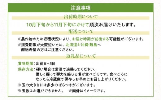 ●十分注意を払いお手配をしておりますが、青果物の性質上、配送中等に傷みやすくなっております。できるだけお早目にお受け取りいただきお召し上がりください。