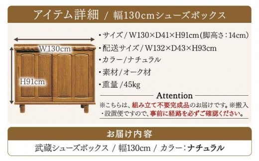 武蔵(ムサシ)幅130L シューズボックス(NA)【北海道・東北・沖縄・離島不可】CN086