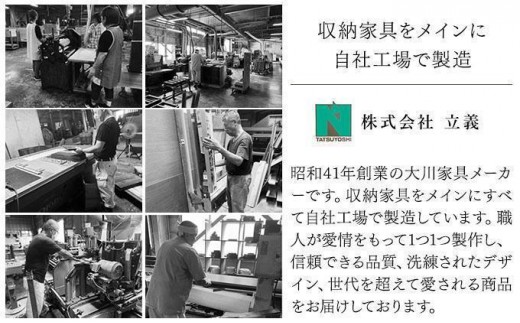 天板は60mm厚の前面をうねらせた天然木調仕上げとなってます。 高級感と重厚感のある存在感抜群の商品です。 脚はガタつかず安定して設置できるアジャスター付。 戸車はVレールを使用し開閉がスムーズです。 組み立て不要な完成品でのお届けです。 ー株式会社 立義ー 当社は、収納家具をメインにすべて自社工場で製造しています。 職人が愛情をもって1つ1つ製作し、信頼できる品質、洗練されたデザイン、世代を超えて愛される商品をお届けしております。 【配送についての注意点】 搬入・設置便でのお届けとなります。事前に搬入経路を必ずご確認ください。 ※一部お届けが難しい地域もございます。 北海道・東北・沖縄・離島は配送不可となります。