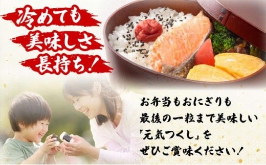 つや・ふっくら・甘みの三拍子。 福岡県で生まれたブランド米「元気つくし」。 炊きあがりはつややかで、ふっくらとした食感が特長です。 噛むほどに広がるやさしい甘みとほどよい粘りで、毎日のごはんが一層おいしくなります。 また、冷めても美味しさが長持ちするので、お弁当やおにぎりにもぴったりです。 お弁当もおにぎりも、最後の一粒までおいしい「元気つくし」をぜひご賞味ください。 ■産地:国産(福岡県) ■品種:元気つくし/単一米 ■産年:令和6年産 ■精米時期:9月~ ■賞味期限:精米後、春夏は2週間~1ヶ月/秋冬にかけては1~2ヶ月 ■保存方法:高温・多湿・直射日光を避け、涼しい場所に保管してください。 ※北海道・沖縄・離島配送不可