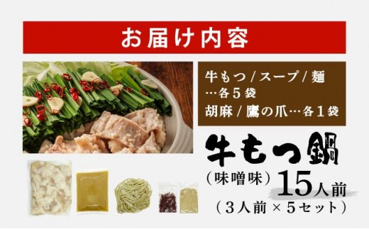 牛もつ鍋 味噌味 15人前セット(3人前×5セット) CF17