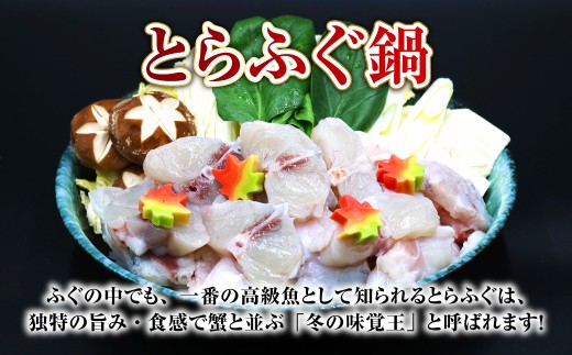 高級魚「とらふぐ」を鍋用に下処理した状態でお届けいたします。 鍋用の野菜や薬味、ポン酢や特製出汁も同梱します! お届け後、すぐにでもとらふぐ鍋をご賞味いただけるセットです。 ■冬の味覚王「とらふぐ」 ふぐの中でも、一番の高級魚として知られるとらふぐは、独特の旨み・食感で蟹と並ぶ「冬の味覚王」と呼ばれます! 白身でクセがない肉質で、あっさりとした味が特徴です。 他の白身魚と比べて脂肪が少なく、コラーゲンも豊富です。 ■とらふぐの養殖生産量日本一!長崎県から産地直送でお届けします! 従来、漁獲量も少なく貴重なとらふぐは、高級料亭でしか味わうことが出来ませんでした。 しかし、養殖技術が向上した近年、高品質で美味しいとらふぐが1年中供給されるようになりました。 長崎県はとらふぐの養殖生産量日本一を誇るとらふぐの産地です。 和泉苑は長崎県の中でもとらふぐ生産で有名な戸石町に店舗を構えており、地元で獲れたとらふぐを生産者から直に仕入れ、販売しています。 輸送費を使わず、仲買業者も入らないため、お客様にお安く提供することが可能です。 「品質は落とさず、美味しいものをより安く」という先代からの想いを受け継いでいます。 ■原料原産地 長崎県長崎市 ■加工地 長崎県長崎市 ■原材料名、素材、成分 ◎鍋用ふぐの身・あら・ひれ酒用ひれ(長崎産養殖とらふぐ) ◎鍋用野菜:国産 ◎薬味:ネギ(国産) ◎赤おろし:大根、唐辛子、食塩 ◎ポン酢:濃口醤油(小麦、大豆、食塩、米) ◎醸造酢(アルコール、米、砂糖、酒かす、食塩、調味料/アミノ酸) ◎橙酢(橙果汁、砂糖、食塩、/香料) ◎穀物酢(小麦、米、コーン、アルコール、食塩、酒かす) ◎凝縮だし:薄口醤油(アミノ酸液、 食塩、砂糖混合ぶどう糖果糖、加工大豆、小麦、/調味料(アミノ酸等) 甘味料(サッカリンNa) 保存料食塩、化学調味料(グルタミン酸ナトリウム等) ■地場産品に該当する理由 長崎市内の養殖業者から鮮魚を仕入れ、長崎市内の加工場でさばき、真空包装・梱包を行っている。(告示第5条第3号に該当) ■返礼品提供事業者 有限会社和泉苑