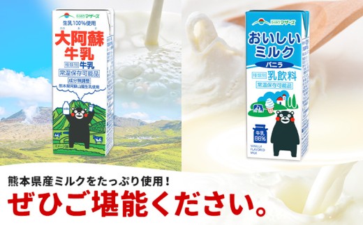 常温保存可能 らくのうマザーズ 詰め合わせ セット 大阿蘇牛乳&ミルクバニラ 200ml×12本ずつ 計24本 合同会社たべたせいか《申込月の翌月から出荷開始》熊本県 菊池市 大阿蘇牛乳 おいしいミルクバニラ 乳飲料 乳性飲料 らくのうマザーズ ドリンク