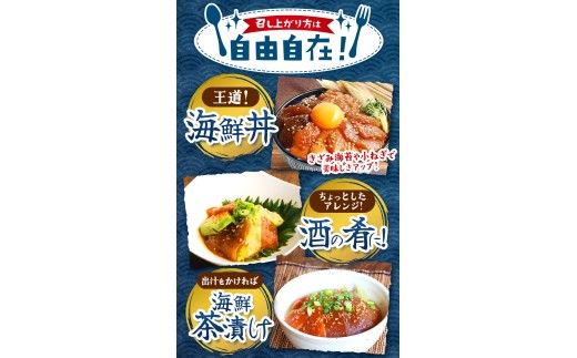 お手軽なのに“本格的”!\\n香ばしいごま醤油だれが絡む、絶品海鮮丼をご自宅で。\\n\\n袋のまま流水で解凍するだけ!\\n炊きたてごはんにのせれば、ツヤっと照りのある切り身がご飯にとろ〜りなじんで、思わずかきこみたくなるおいしさです。\\n\\n刻み海苔や山葵(わさび)を添えるだけでも、風味がぐっと引き立ちます。\\nその日の気分で、味の変化も楽しめる一品です。\\n\\nおすすめなのが、熱々のおだしやお茶をかけて楽しむ“海鮮茶漬け”アレンジ。\\n香ばしさが引き立ち、さらりとした後味で〆にもぴったり。\\n\\n冷凍庫にあると嬉しい、個包装タイプ。\\n忙しい日やちょっと贅沢したい日に、簡単・満足の海鮮丼をぜひどうぞ。\\n\\n【重要なお願い】\\n〇不在日や配送日指定を備考欄に入力いただいても、承ることができない場合がございますので、あらかじめご了承ください。\\n〇画像はイメージです\\n〇年末年始やお盆時期などは発送が遅れる場合がございます。予めご了承下さい。