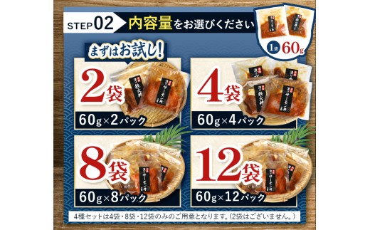 容量:※内容量をお選びください。\\n漬けまぐろ丼の素:60g、漬けサーモン丼の素:60g\\n漬けねぎとろ丼の素:60g、漬けカツオ丼の素:60g\\n・4袋(1袋ずつ)\\n・8袋(2袋ずつ)\\n・12袋(3袋ずつ)