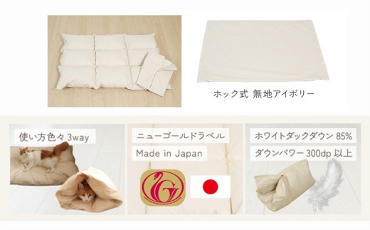 【アイボリー・ホック式】ペットの羽毛ふとん「もぐるにゃん」Sサイズ カバー付_AF-J205-iv_(都城市) ペット用ふとん 羽毛 100cm×70cm 0.3kg ホワイトダックダウン タタキキルト 日本製