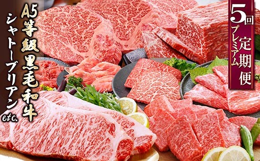 定期便(5回配送)A5等級黒毛和牛シャトーブリアン・サーロインステーキetc GG-0030_肉 お肉 牛肉 黒毛和牛 鹿児島県産 切り落とし 赤身 ブロック 焼肉 しゃぶしゃぶ すき焼き 人気 送料無料【1166762】